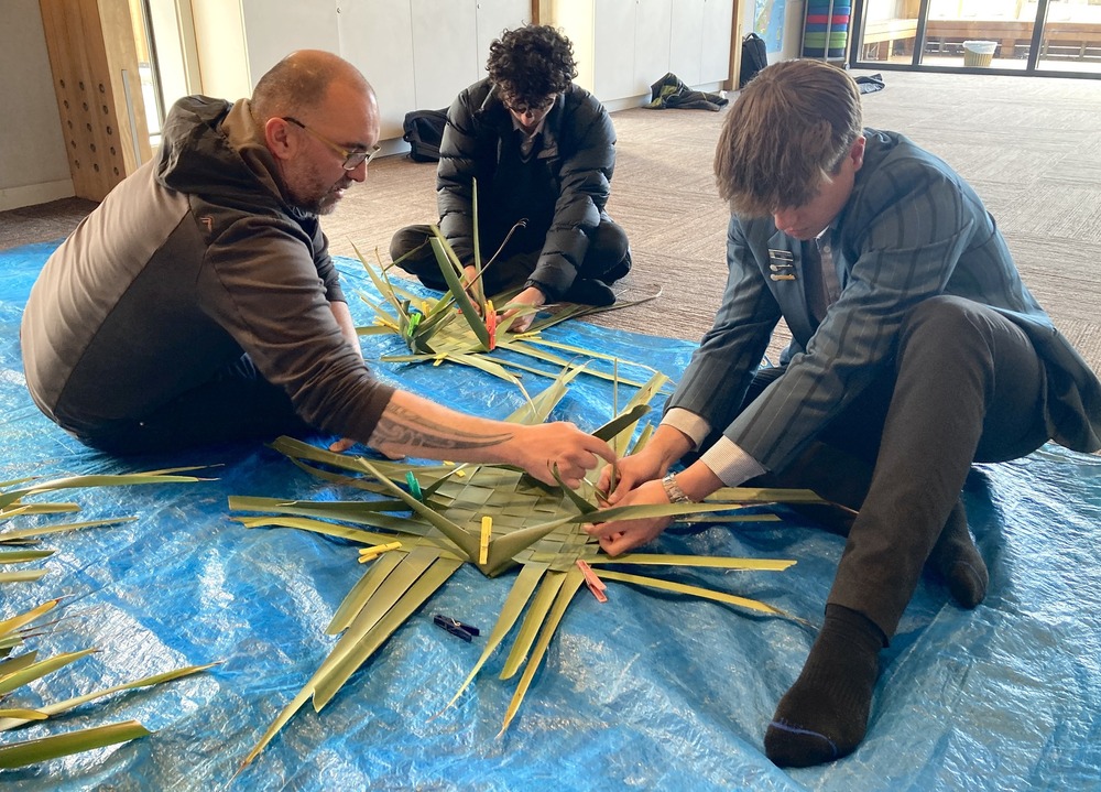 The new curriculum’s vision for learning places value on Te Ao Māori perspective. MAC teacher Raihania Chadwick pictured flax weaving with senior students. PHOTO: Wānaka App