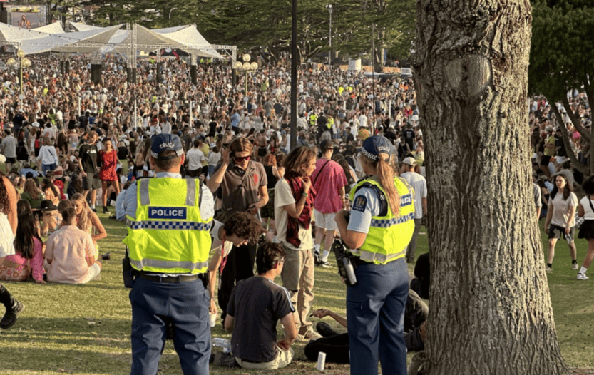 Police gather at Summer Haze in Tauranga. PHOTO Chris Schulz, Supplied