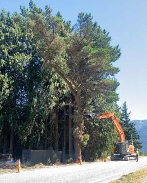 Tree removal at Makarora, next to SH6. The trees had been identified as a danger to the road and road users due to rot.